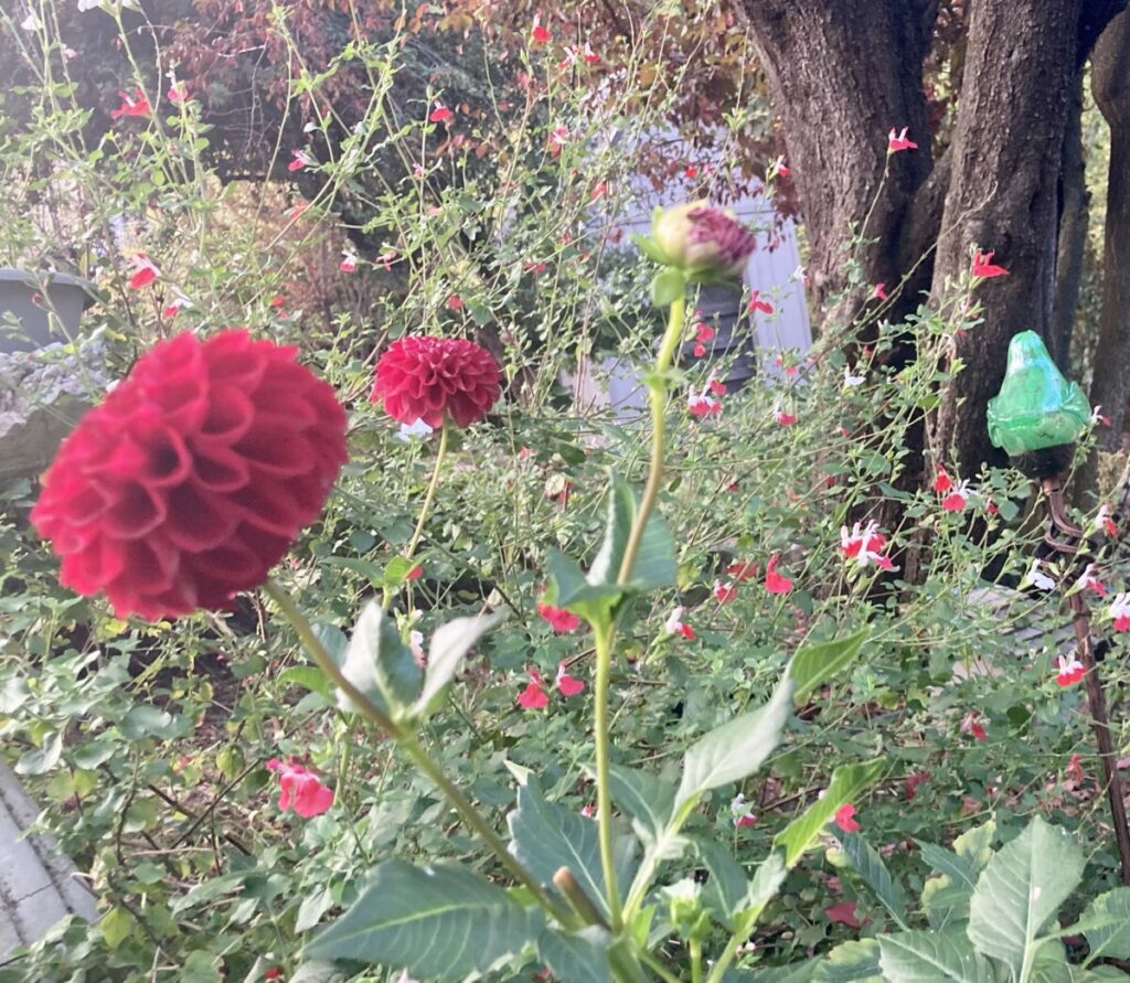 I planted dahlia tubers too late in the season. They were from the last bag that Costco had and were on sale early in the summer. Somehow, they managed to bloom anyway. Just a surprising place where hope showed up. Also? These flowers have nothing to do with the post that follows.