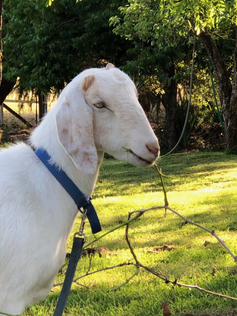 This is Sophia. She belongs to a friend who rescued her after she got caught in a barbed wire fence. Sofia had to have her leg amputated, but she is happy and loved. She proves that it’s a fine thing to be a goat, especially one that can romp through a meadow in the sunshine.