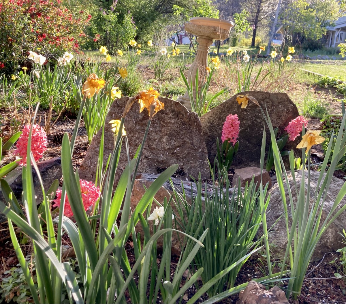 The bulbs outside my kitchen window are blooming. Grateful for springtime.