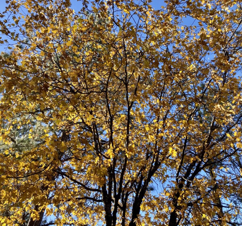 Thankful for the beauty that is outside my front windows now. So much yellow in the turning trees, with dollops of red and orange sprinkled throughout. When the wind picks up, the leaves tumble down. Raining leaves, it is. I could watch that show for hours.