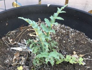 If nothing else today, I was kind to the birds. I refilled their feeders and the bird bath. I watered the front and back flower beds and even remembered to turn the water off afterward, so as to avoid what happened last week when I left the hose on the artichoke plant so long that it filled up the pot and overflowed through the deck to the ground below. It’s a tricky spigot and I thought it was turned off. Nope. It just dripped for a day or so before I looked outside and noticed a lovely reflection in the artichoke’s pot, which had been transformed into a mini-pond. Surprisingly, the artichoke plant seems no worse for its soaking. It actually looks healthier than ever. I think there must be a lesson there, some kind of unexpected grace.